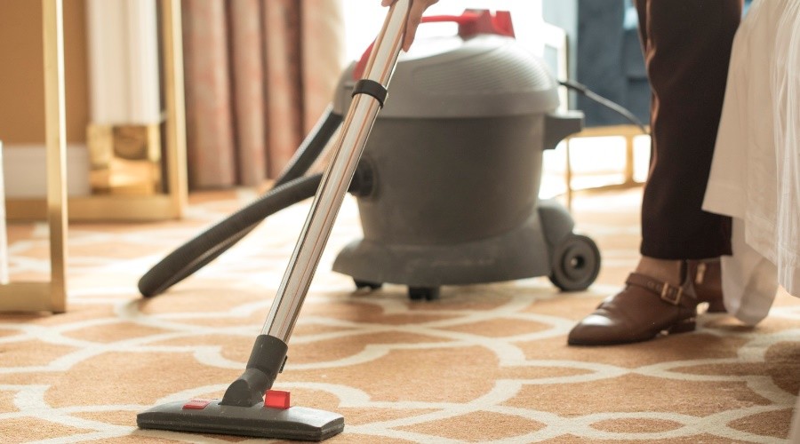 用吸塵器全面吸塵,稀釋清潔劑,也可注入水箱。在地毯上全面噴灑清潔劑,作用10-15分鐘后,污漬脫離纖維,用洗地機抽洗,操作向后行走而使每操作行有一部分重疊,最少經(jīng)過兩次抽洗,在清洗地毯的同時,用吸水機吸凈已洗完的地毯,讓地毯完全干透,為加快地毯干透,可開動地毯吹干機。